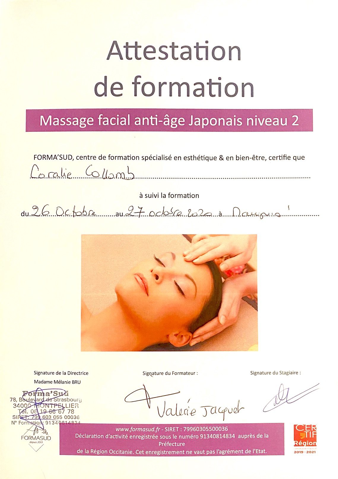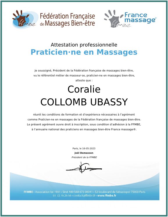 Je suis Coralie Collomb Ubassy, Réflexologue certifiée FFMBE, Praticienne en médecine alternative : EMDR-NTMO, Reiki, Massage anti-âge Kobido.