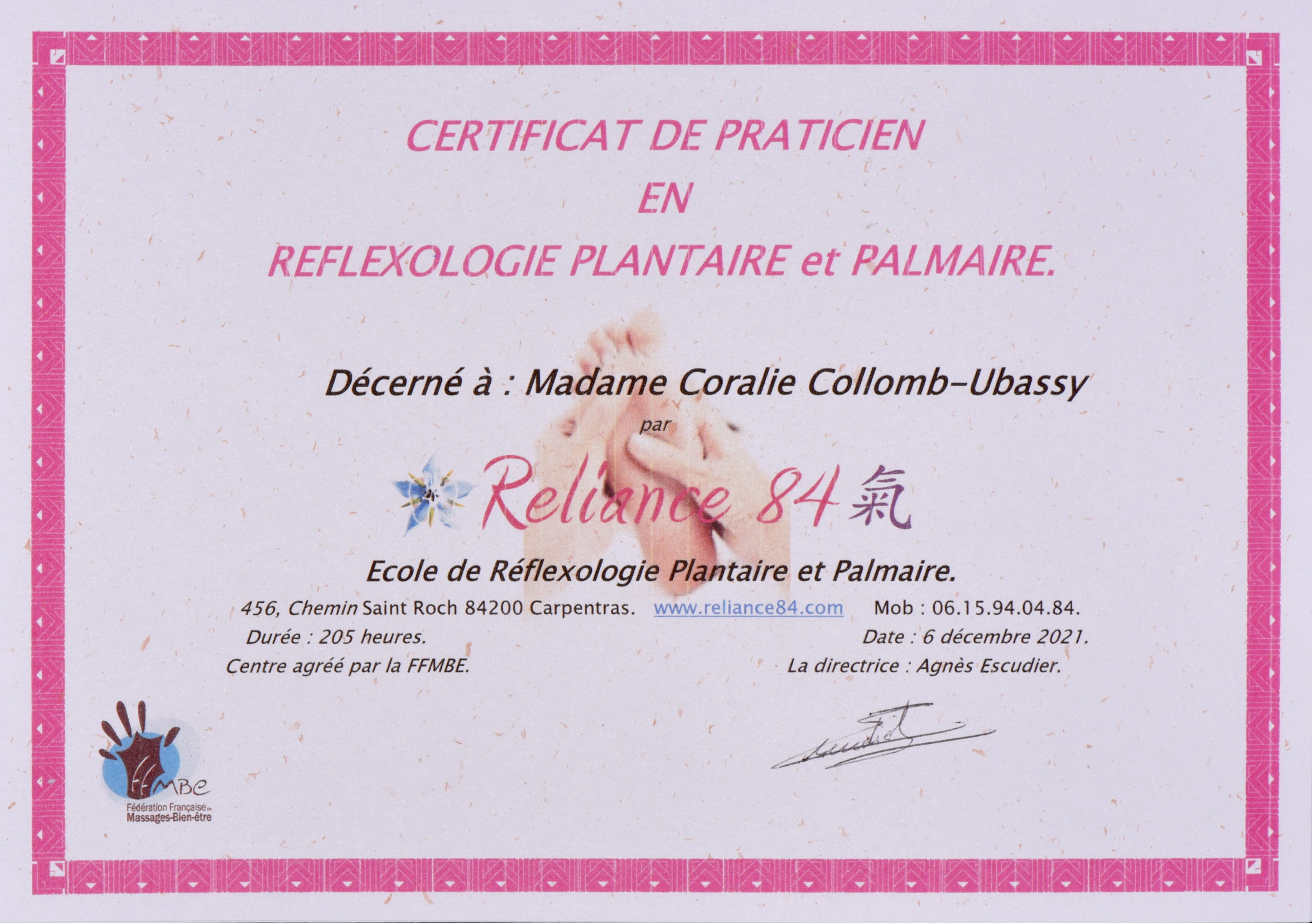 Réflexologue et praticienne massage bien-être, certifiée FFMBE